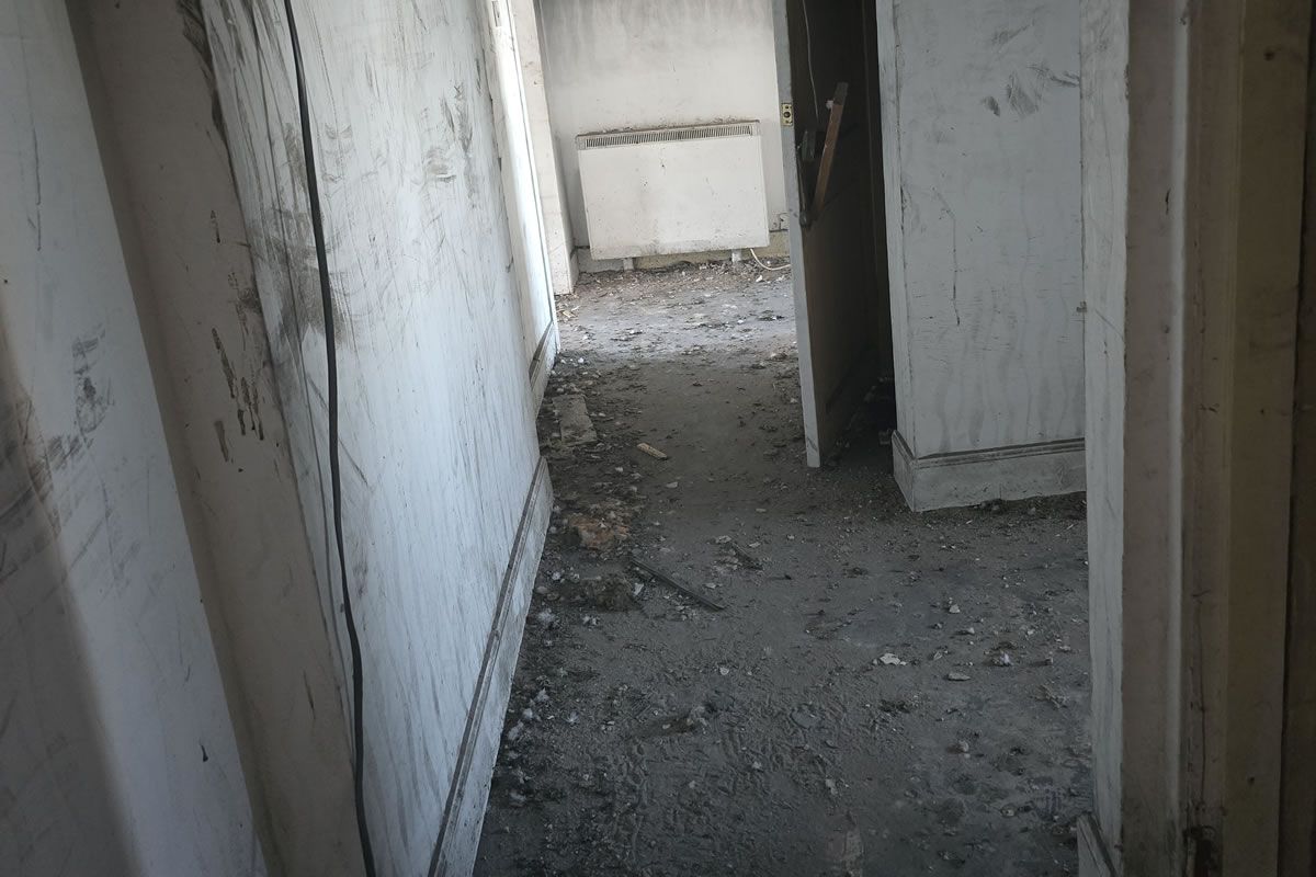 COMPRISES: Hallway, lounge with bay window, kitchen, 2 bedrooms and bathroom. Requires refurbishment prior to habitation. Fire damage in communal close area and smoke damage. Currently Uninhabitable.