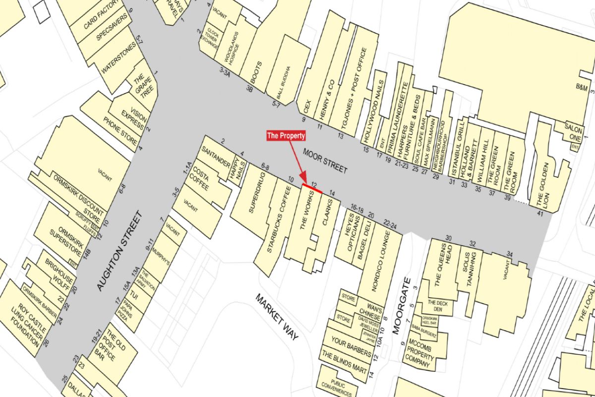 Features pedestrianised sections that form part of the town’s retail and market area, a prime pedestrianised retail pitch following recent improvements to paving and street furniture.