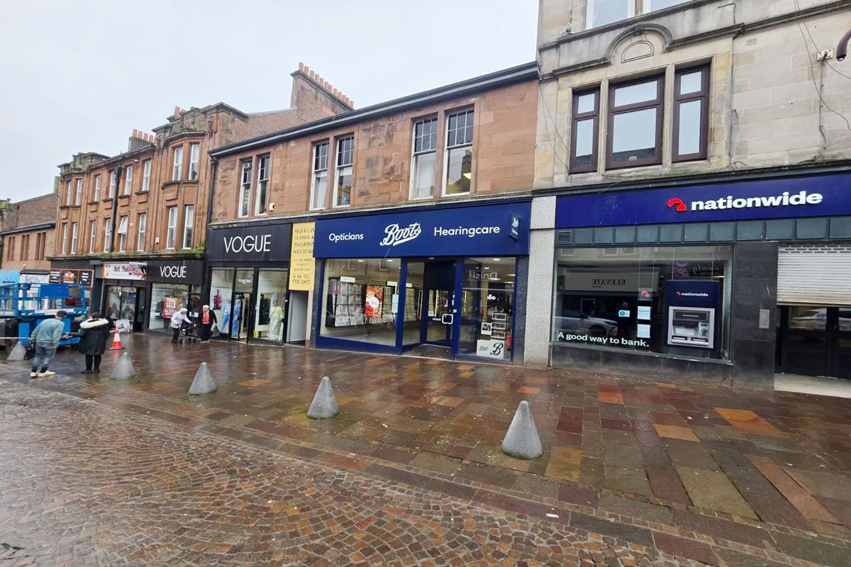 INCOME PRODUCING INVESTMENT*** Ground floor commercial property. EXCELLENT TRADING POSITION. Boots Opticians in occupation producing £20,000 per annum on a FRI Lease. Tenant: Boots Opticians Professional Services Passing Rent: £20,000p.a.x. Term: 5th April 2025 until 6th April 2035 Review & Break: 6th April 2030 Further Info: Boots UK, part of Walgreens Boots Alliance, is a leading health and beauty retailer founded in 1849, offering pharmacy services, cosmetics, wellness products, and specialised healthcare like opticians and hearing care. It operates primarily on high streets and in shopping centres, serving over 85% of the UK population within a 10-minute walk. • Opticians and Hearing Outlets: Approximately 550 opticians practices (including integrated and standalone) and over 400 hearing care centres across the UK. • Total Stores: Around 2,000 retail stores in the UK and Ireland. • High Street Presence: Strong focus on high streets and shopping centres, with convenient access for most communities. • Annual Turnover: £7.3 billion (year ending August 2024). • Staff Employment: Approximately 64,000 employees. The property forms the ground floor retail unit with an a larger mixed use traditional development surmounted by a pitched roof. Then area has been measured to the following: Ground 1,026sq ft The property has been fitted out in accordance with the tenants corporate specifications with laminated wooden floors fitted WC, office, suspended acoustic tile ceiling and LED lights. Neighbouring occupiers include; Primark, Barrhead Travel, Scotcrest Uniform, and Esme Anne Children's Boutique. Additionally, the Regent Shopping Centre, incorporating an M&S store is close by.