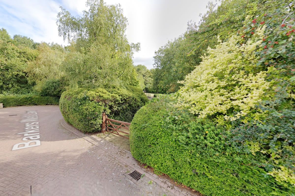 Land comprises mostly amenity land and trees within an irregular shaped area.