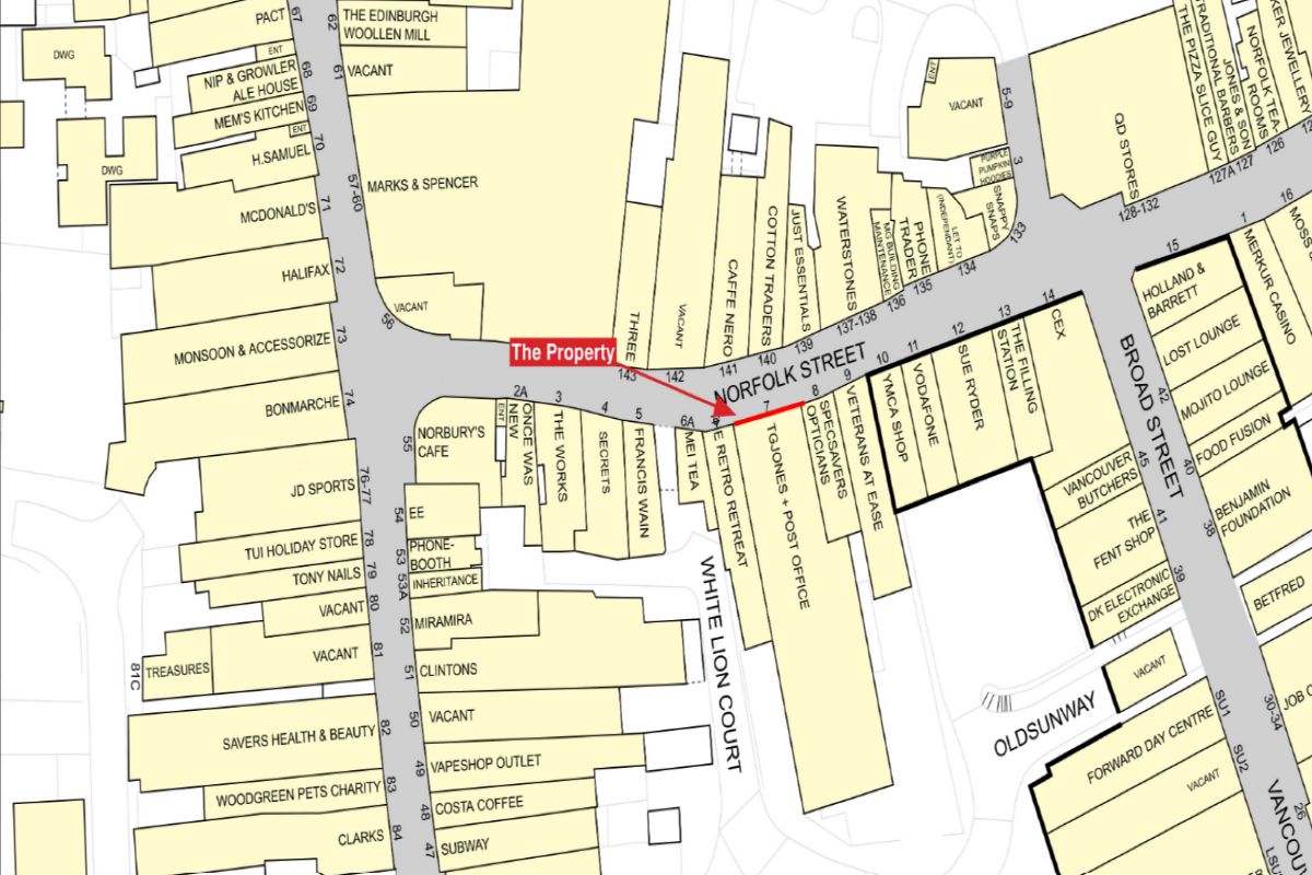 INCOME PRODUCING INVESTMENT* Tenanted retail unit in in EXCELLENT TRADING POSITION over ground & first floor with parking. Currently producing £70,000 per annum on a FRI Lease. SUPERSIZE 13,099 sq ft Entirely let to TG Jones Retail Holdings Limited (t/a TG Jones, formerly WH Smith) On a lease expiring 2029 (no breaks) Current Rent Reserved £70,000 p.a. Market rent £140,000 p.a. Total accommodation of approx. 1,216.95 sq m (13,099 sq ft) Ground floor compromises a substantial retail area. At the rear is the Post Office customer service counter and financial advisory room, with a storage space and area to access to the service lift. The first floor includes a large storage space, offices, and staff amenities. The layout provides options for development and alternative uses (subject to planning consent). There is a large loading and parking area at the rear via Broad Street, with space for at least 10 cars. POPULAR LOCATION Occupiers close by include Specsavers, Vodaphone, Cafe Nero. Three, The Works, Mark & Spencer, JD Sports, Halifax and Boots Opticians amongst others.