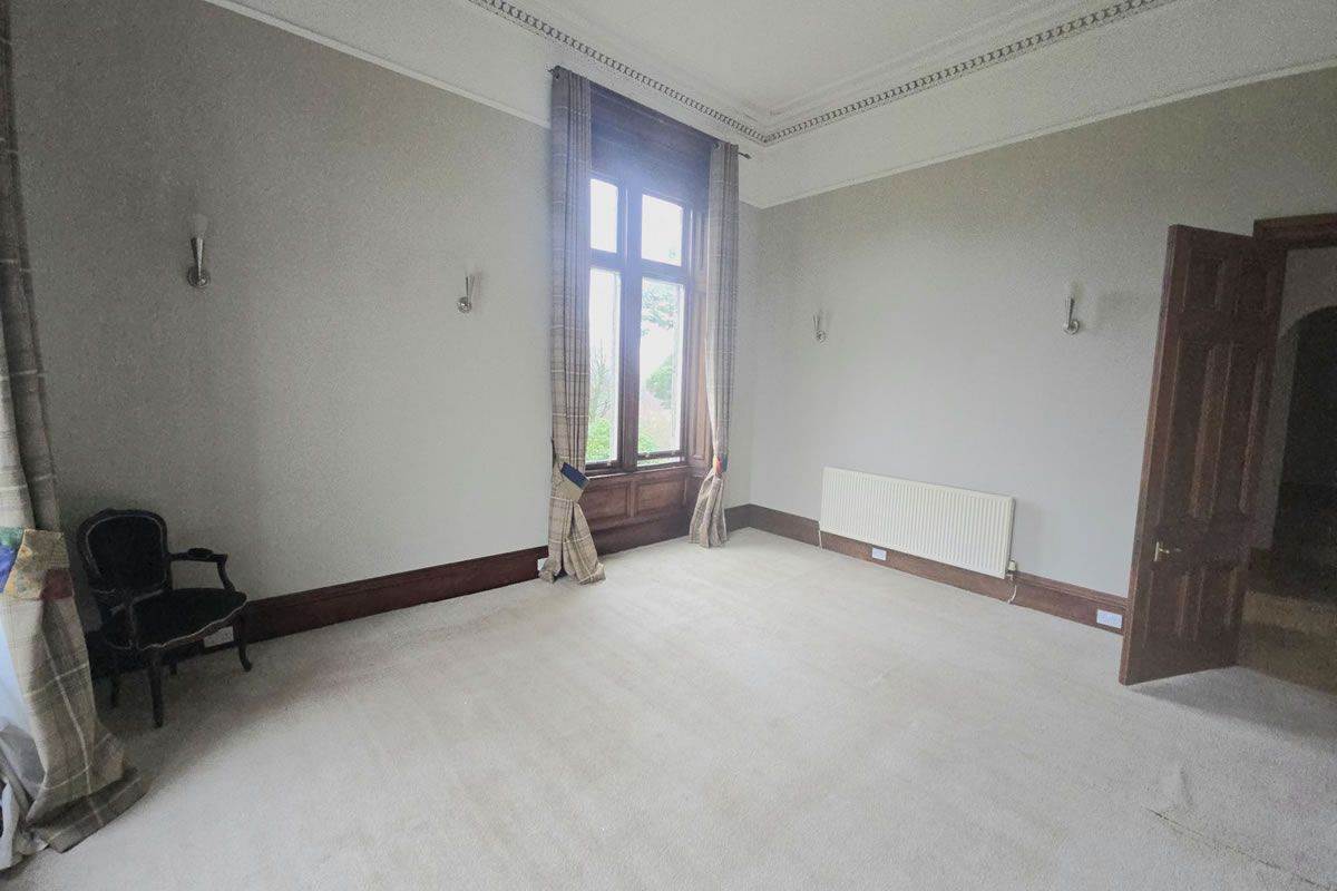 A former Victorian mansion house offering an unusual and interesting setting for this conversion on the preferred first floor. The property is accessed via an ornate period hallway with wooden cornice, fittings and panelling. The property itself forms part of a B listed sandstone building set in rural splendour close to the well regarded commuter village of Killearn. Internally the accommodation comprises reception hall, large lounge, fitted kitchen, 3 bedrooms (master en-suite) large bathroom and utility / laundry room. The property is further enhanced by a single garage and off road residents parking to front. Lovely communal gardens.