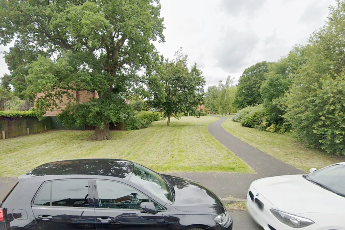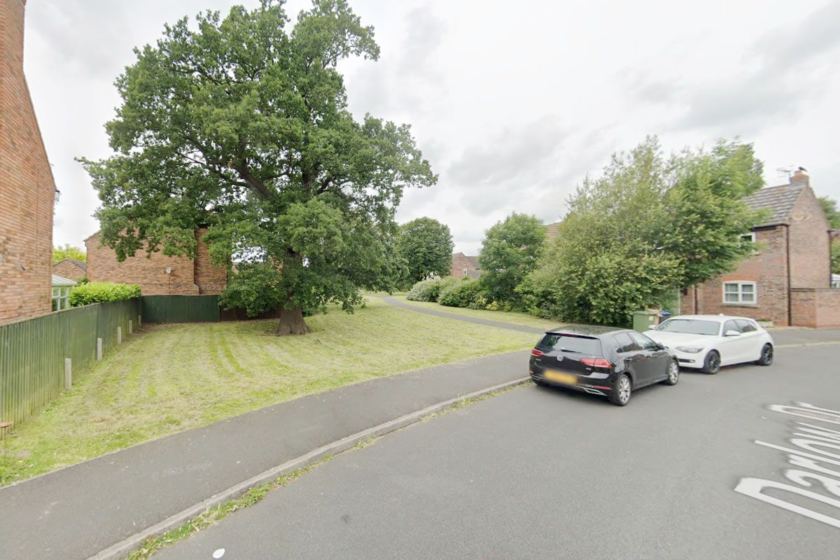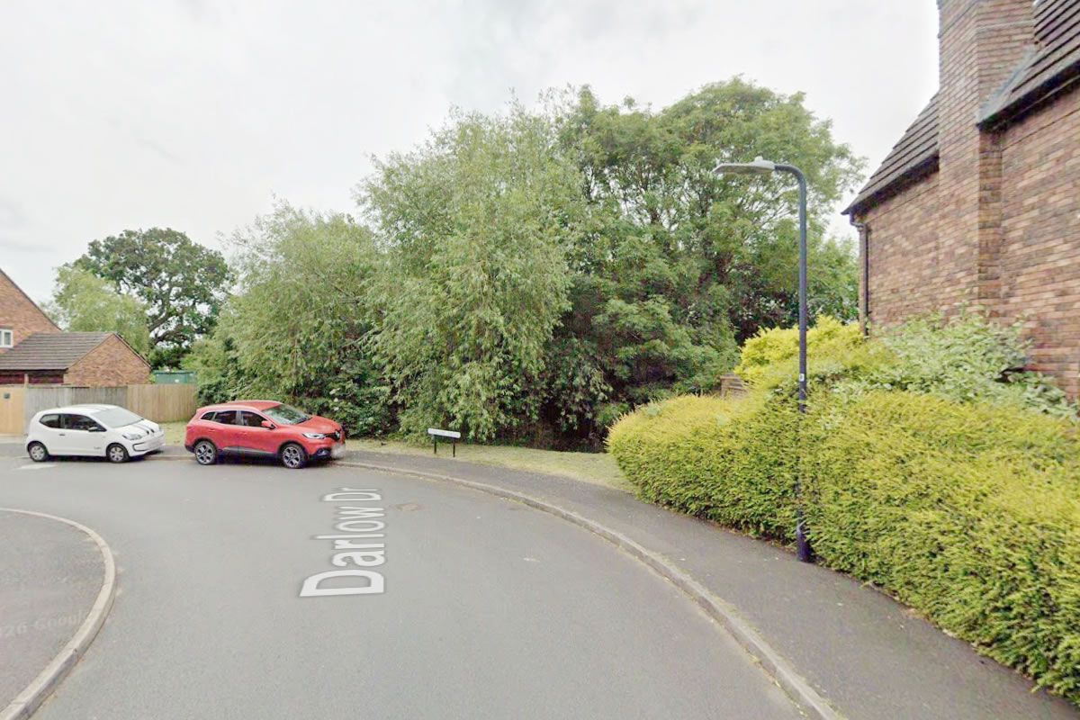 Land comprises mostly amenity land and trees within an irregular shaped areas.