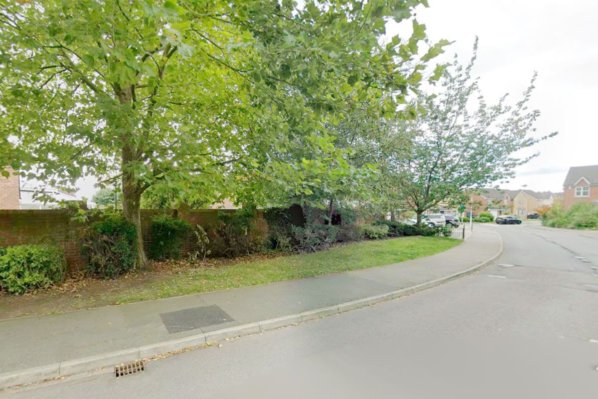 Land comprises mostly amenity land and trees within an irregular shaped areas.