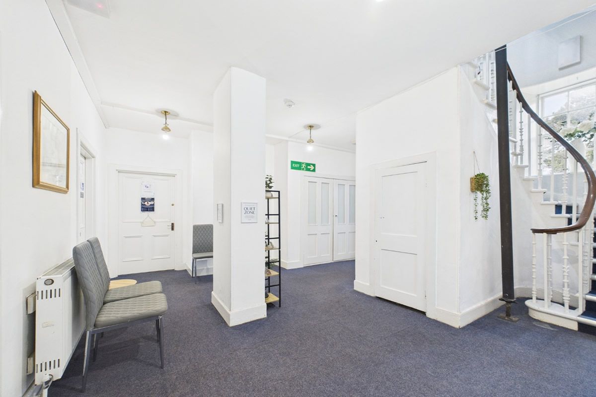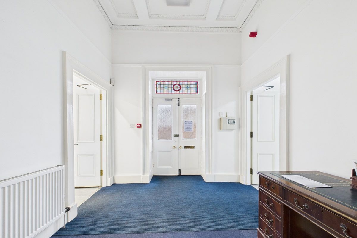 Internally, the building retains many of its original ornate features. The rooms have high ceiling heights with decorative coving and large windows allowing a high degree of natural light.